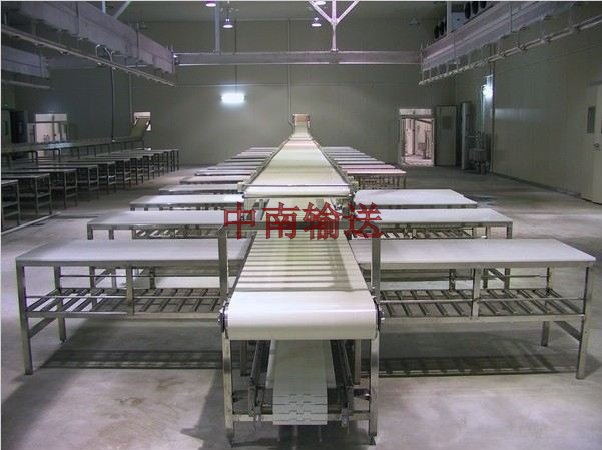 分割輸送機又稱不銹鋼尼龍輸送線,是分割肉流水線生產(chǎn)的主要設(shè)備之一。適用于牲畜胴體劈半、預(yù)冷、排酸后的剔骨、分割,該機的機架體全部采用不銹鋼材料。輸送帶為無毒尼龍輸送帶,為使經(jīng)久耐用,采用了無接頭的特制方式,使該機在使用中達(dá)到了無噪音,輸送帶無偏斜現(xiàn)象發(fā)生,機腳座采用尼龍活動腳,安裝調(diào)式輸簡便,機架選料為無縫不銹鋼方管,解決發(fā)積垢污染問題。使設(shè)備的衛(wèi)生條件達(dá)到了分割車間對外注冊的標(biāo)準(zhǔn),并使剔骨、分割肉生產(chǎn)輸送自動化。