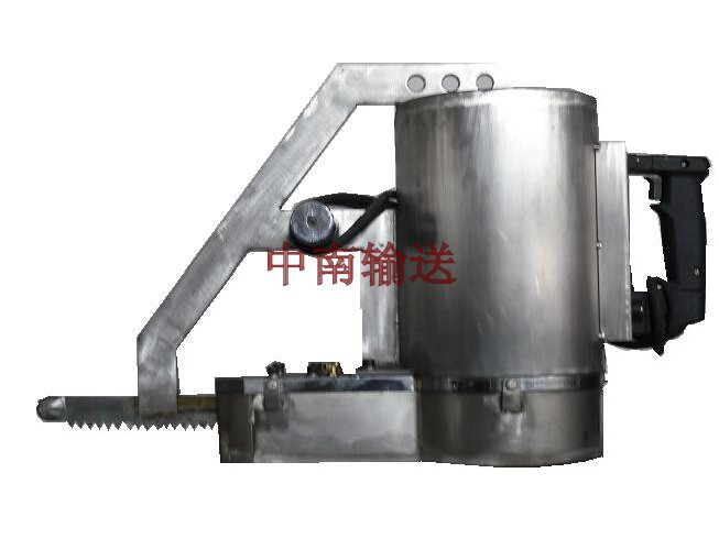該機(jī)是用于牛、羊、馬等牲畜的開(kāi)胸,以便工作人員對(duì)胴體的掏內(nèi)臟及劈半之用,主要由偏心塊、邊桿、鋸弓、鋸條、電機(jī)等組成。